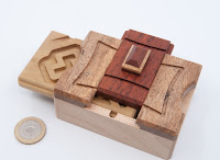 Emily dropped Ed off for his more-or-less supervised day out with the puzzlers, and I made full use of the opportunity by first giving him some of my new Karakuris to whizz through (yup, he did whizz through them!) and then giving him my copy of Menace which had been eluding me thus far… I’d got the first half done but the second have was befuddling me. Having left him alone with it for a while, he duly solved it and then gave me a couple of hints enabling me to finally get through to the end of it…what can I say, the boy is pretty good at solving puzzle boxes!